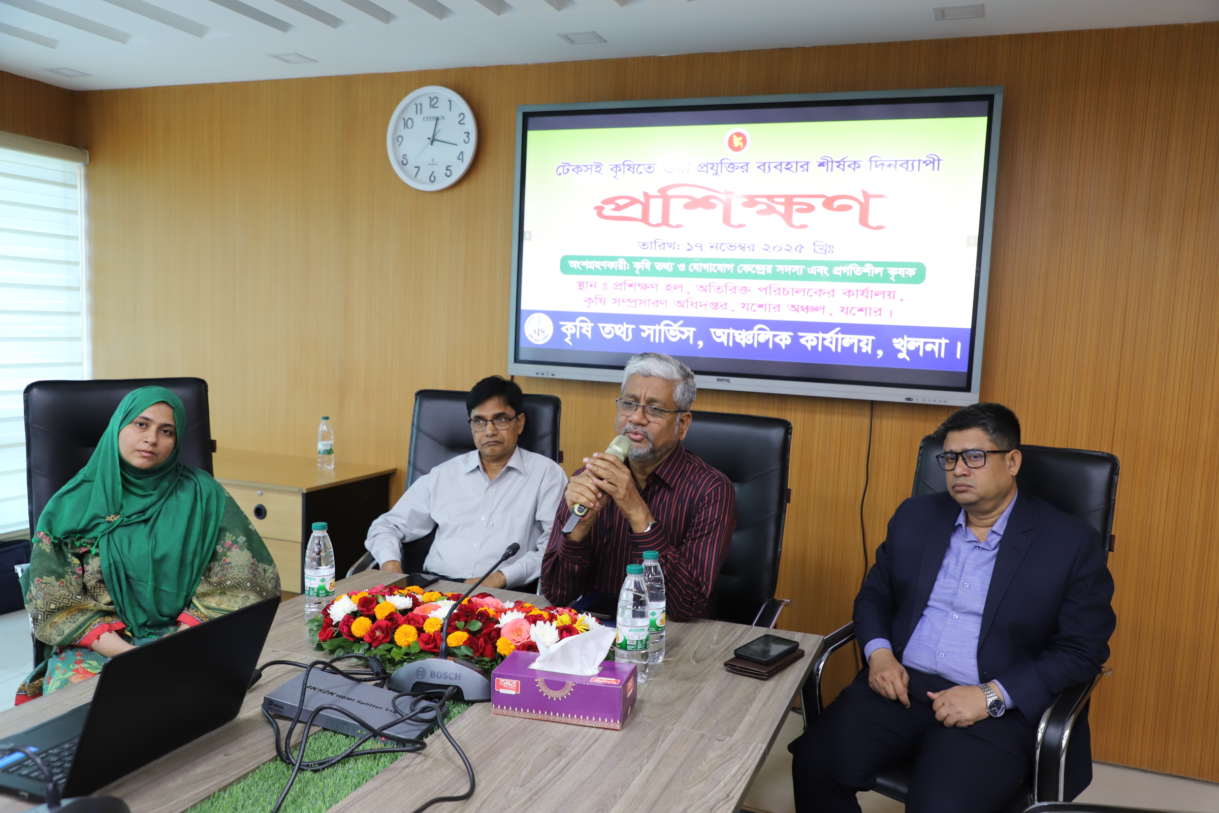 সভাপতির বক্তব্যে অতিরিক্ত পরিচালক যশোর অঞ্চল বলেন, দেশের কৃষির পথ প্রদর্শক অঞ্চল হিসেবে এটি কাজ করে । যশোর, ঝিনাইদহ, মাগুরা, চুয়াডাঙ্গা, কুষ্টিয়া ও মেহেরপুর নিয়ে গঠিত যশোর অঞ্চলকে কৃষি অগ্রদূত হিসেবে উল্লেখ করে তিনি বলেন, মাঠ ফসল, সবজি, ফল, মসলাসহ সব ধরণের ফসলের অগ্রযাত্রা এখান থেকেই শুরু হয়। এ অঞ্চলের কৃষিতে আধুনিক কৃষির বৈচিত্রতা থাকায় এখানকার কৃষকেরা বাণিজ্যিক কৃষির সাথে জড়িত রয়েছে।