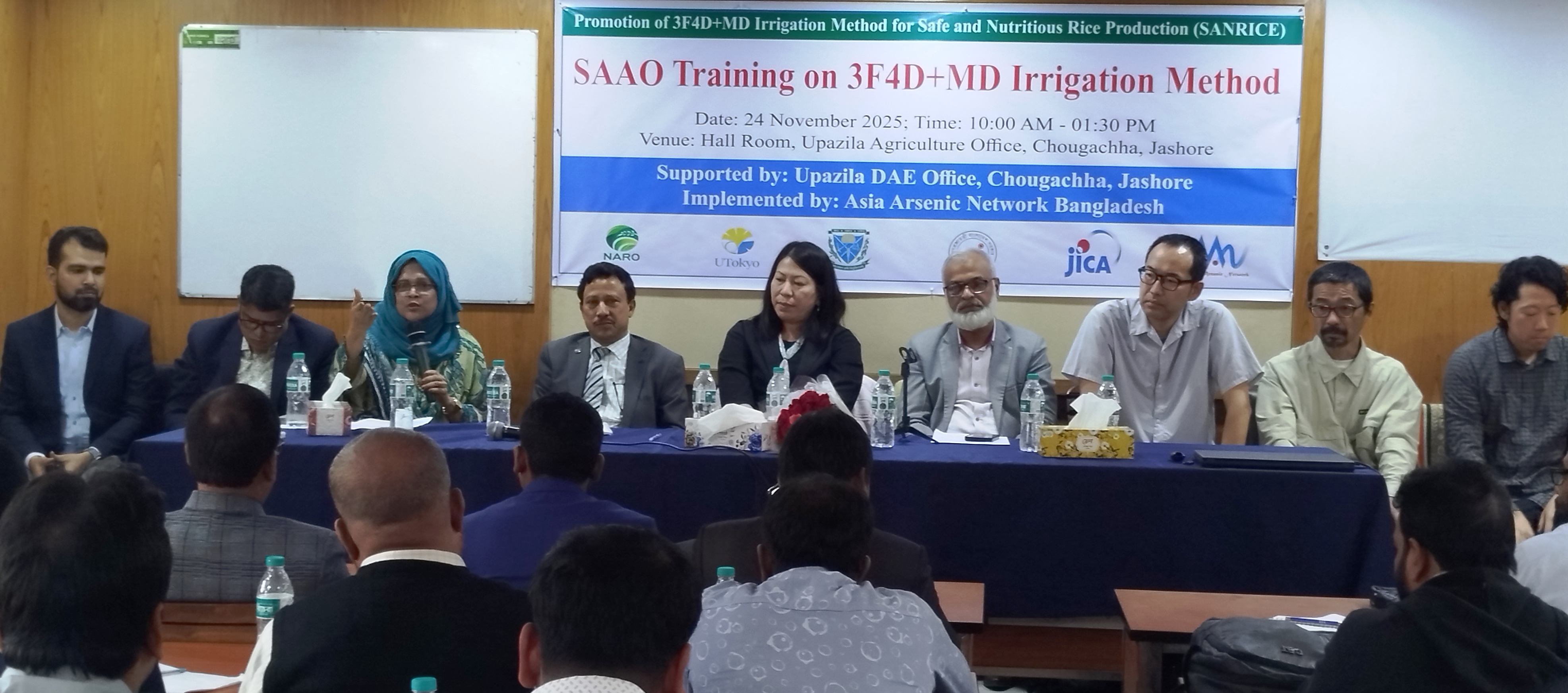 বাংলাদেশে ধান উৎপাদনের প্রধান মৌসুম হলো বোরো, যার সম্পুর্ণ চাষটাই সেচ নির্ভর। ফলে ইরি-বোরো ধান চাষে মাটি থেকে আর্সেনিক, ক্যাডনিয়ামের মতো বিষাক্ত পদার্থ চাউলের মাধ্যমে আমাদের শরীরে প্রবেশ করছে। ধান চাষে পরিমিত সেচের মাধ্যমে এ ক্ষতির হাত থেকে রেহাই পেতে জাপানের জাতীয় কৃষি গবেষণা কেন্দ্র (NARO) 3F4D+MD প্রযুক্তি প্রয়োগ করে সফলতা পেয়েছেন। বাংলাদেশ কৃষি বিশ্ববিদ্যালয়, ময়মনসিংহে প্রযুক্তিটি পরীক্ষামূলক প্রয়োগে সফলতা পাওয়া গেছে। বিষয়টি নিয়ে এশিয়া আর্সেনিক নেটওয়ার্ক জাইকার সহায়তায় যশোরের চৌগাছা উপজেলায় মাঠ পর্যায়ে কাজ শুরু করেছে।