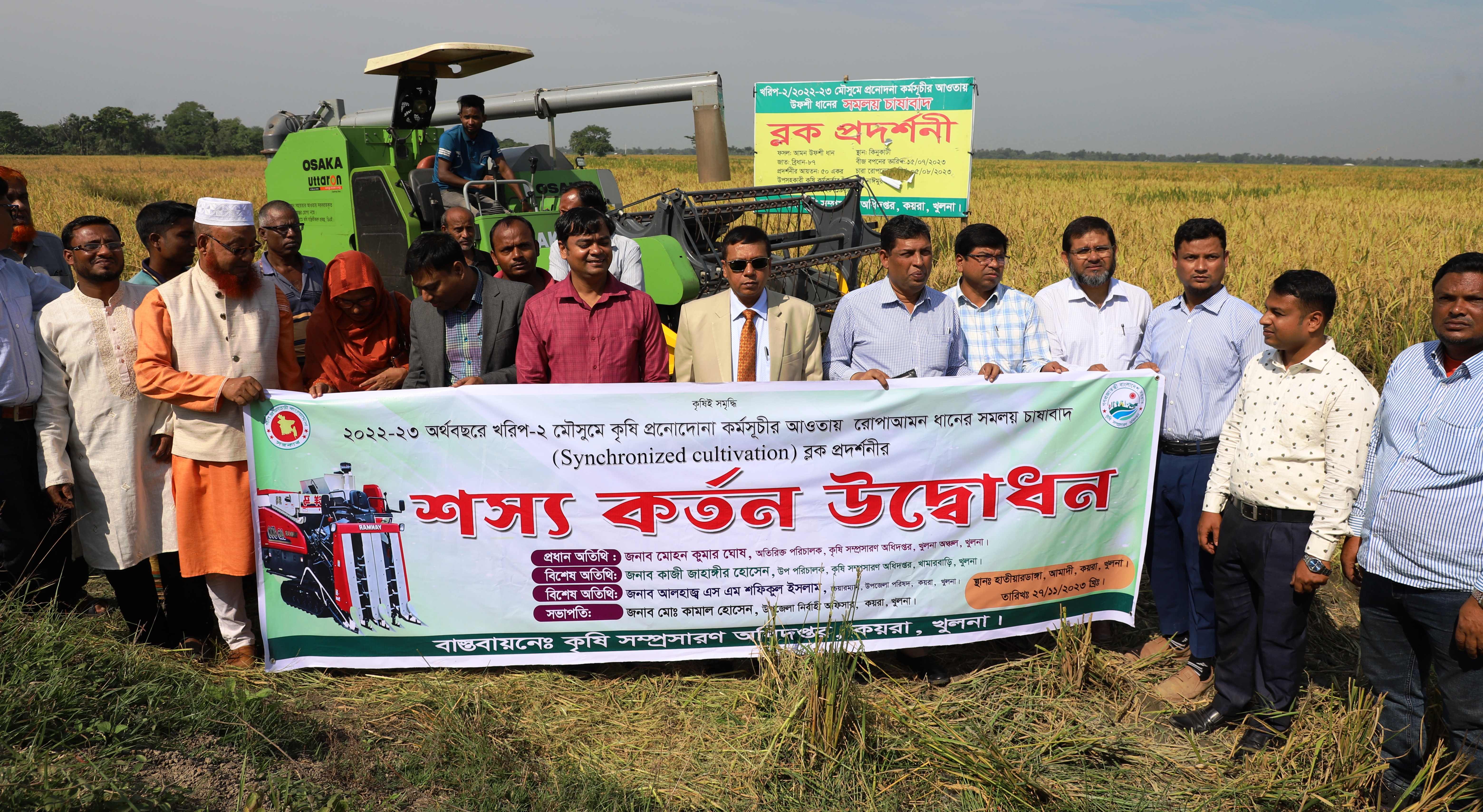 ২০২২-২৩ অর্থবছরে খরিপ-২ মৌসুমে কৃষি প্রণোদনা কর্মসূচীর আওতায় খুলনার কয়রা উপজেলার আমাদী ইউনিয়নের হাতিয়ারডাঙ্গা বিলে রোপা আমন ধানের সমলয় চাষাবাদ ব্লক প্রদর্শনীর শস্য কর্তন উদ্বোধন করেন, ডিএই খুলনা অঞ্চলের অতিরিক্ত পরিচালক মোহন কুমার ঘোষ।