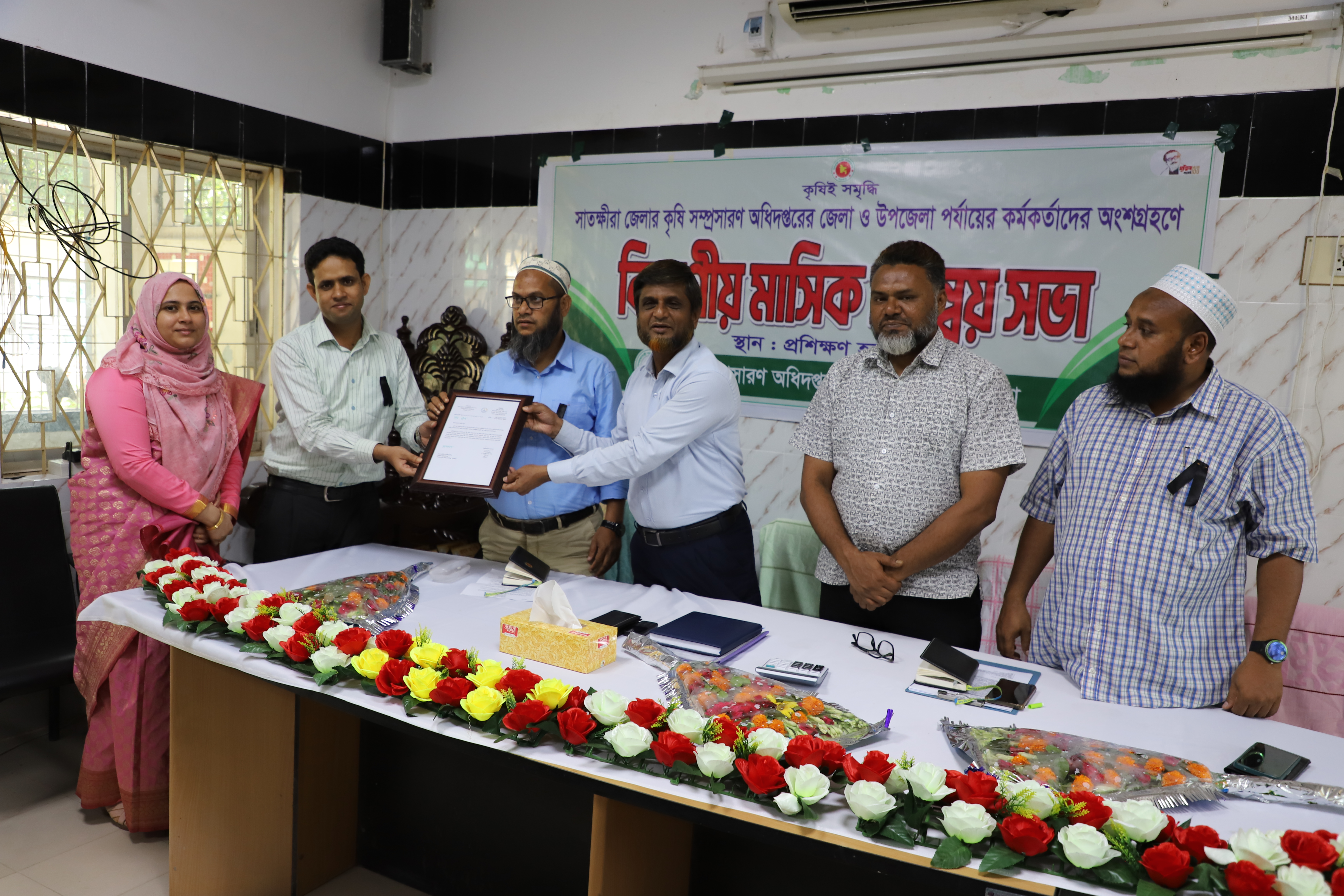 ১৪২৯ বঙ্গাব্দে ডিএই খুলনা অঞ্চলে কৃষি কথার সর্বোচ্চ গ্রাহক সংগ্রহ করায় সাতক্ষীরা জেলার কালিগঞ্জ উপজেলা কৃষি অফিসার কৃষিবিদ ওয়াসীম উদ্দিনকে পরিচালক ,কৃষি তথ্য সার্ভিস প্রদত্ত সম্মননা স্মারক তুলে দিচ্ছেন উপপরিচালক, কৃষি সম্প্রসারণ অধিদপ্তর, সাতক্ষীরা কৃষিবি