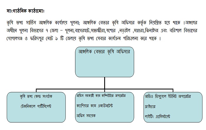 কৃষি তথ্য সার্ভিস আঞ্চলিক কার্যালয় খুলনা; আঞ্চলিক বেতার কৃষি অফিসার কর্তৃক নিয়ন্ত্রিত হয়ে থাকে , খুলনা অঞ্চলের ৪টি জেলা খুলনা ,বাগেরহাট,সাতক্ষীরা ও নড়াইল , যশোর অঞ্চলের ৩টি জেলা যশোর ,মাগুরা, ঝিনাইদহ এবং ফরিদপুর অঞ্চলের ৫টি জেলা গোপালগঞ্জ ফরিদপুর, মাদারীপুর , শরিয়তপুর ও রাজবাড়ি। এ সব জেলাগুলোতে কৃষির যাবতীয় বিষয় যেমন- কৃষি,মৎস্য,প্রাণি সম্পদ বিষয়ে তথ্যাদি প্রচার কাজ পরিচালনা করে আসছে।